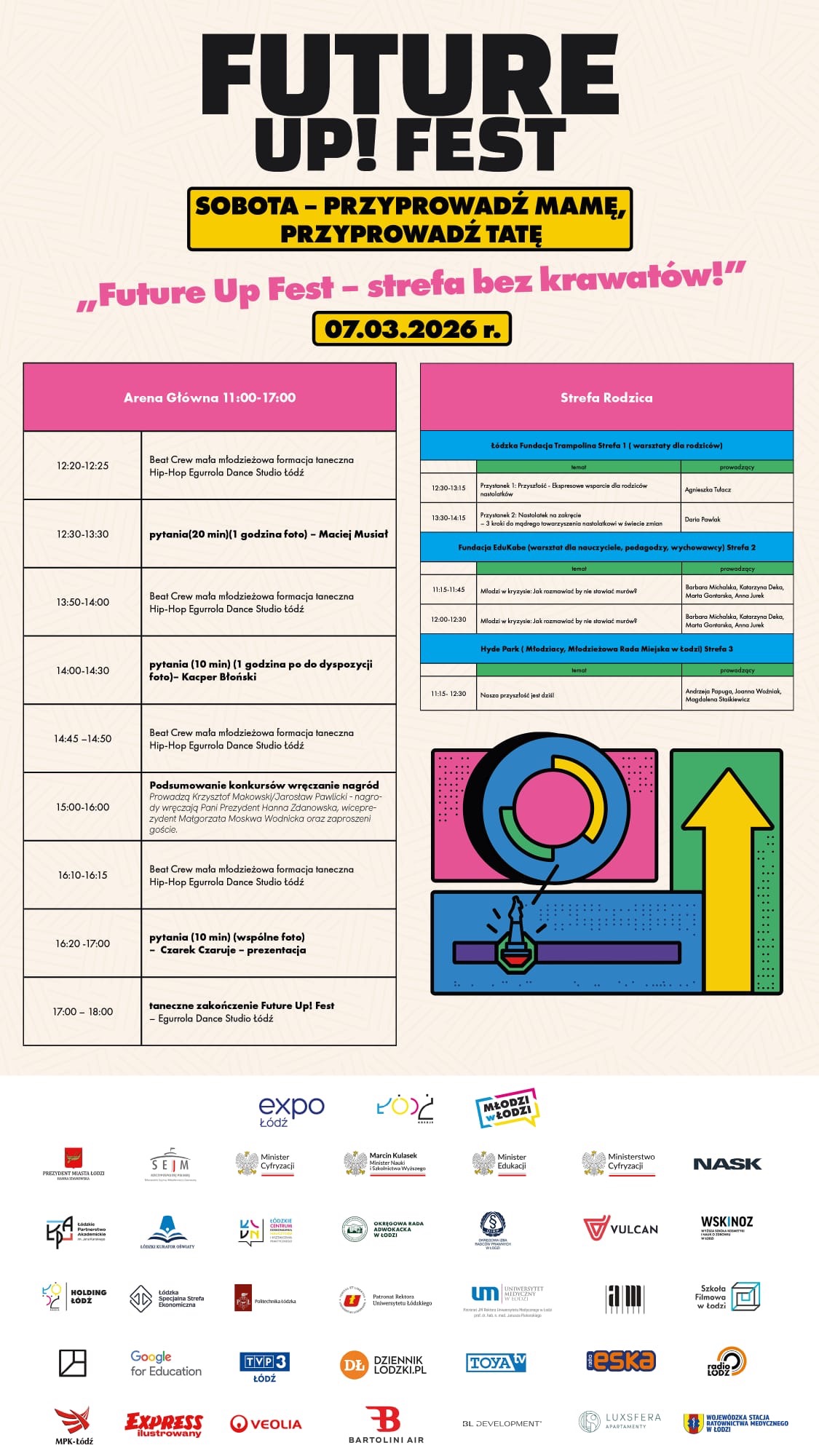 Już 5–7 marca 2026 r. w Expo-Łódź rusza pierwsza edycja Future Up! Fest–innowacyjnego festiwalu edukacyjnego dla młodzieży 13–19 lat (uczniowie klas VII–VIII oraz szkół ponadpodstawowych). Zapraszamy.